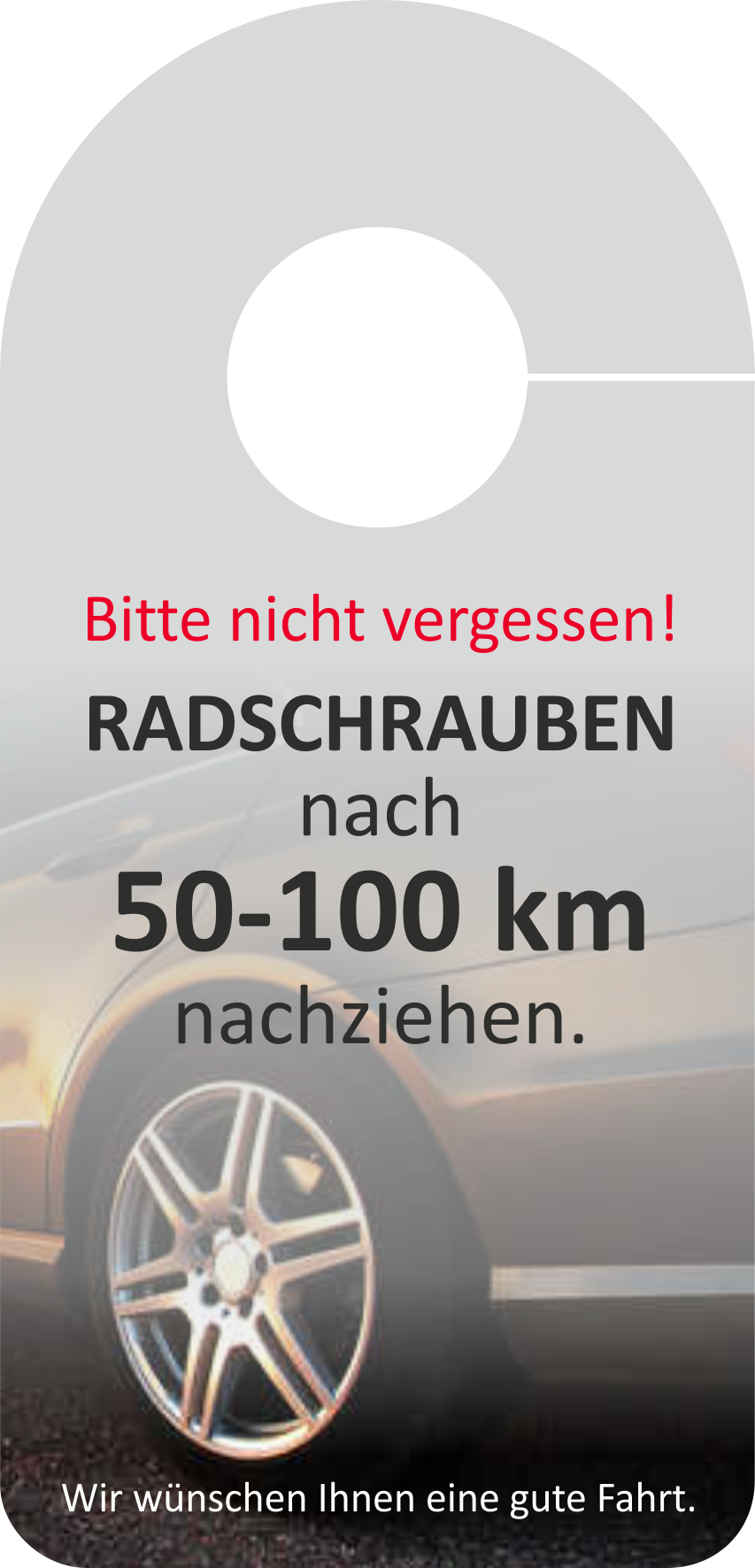 Format: 99mm x 210mm, abgerundete Ecken, Ausstanzung zum leichten Einhängen an Spiegel.